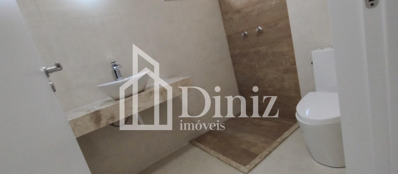 Banheiro da suíte master com cuba dupla e chuveiro duplo